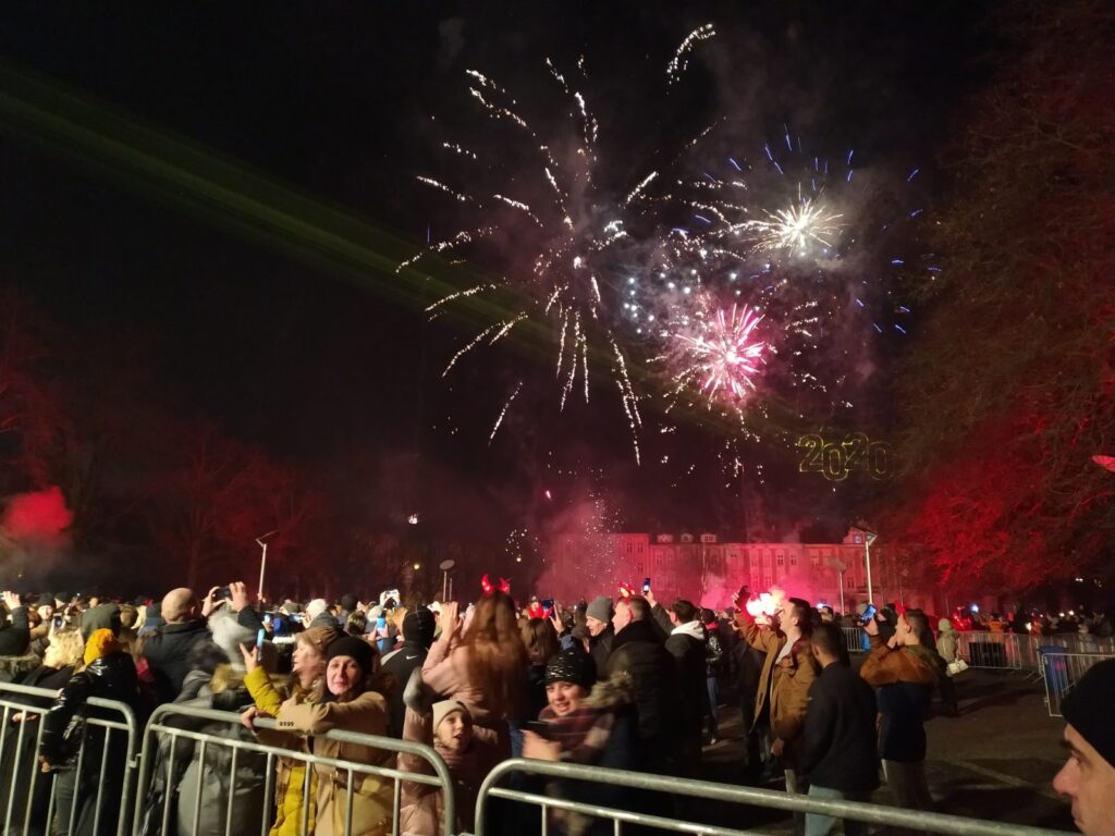 Kilka tysięcy gorzowian przywitało nowy 2020 rok na Placu Grunwaldzkim z władzami miasta i grupą Komodo. Z kilku kilometrów słychać było w mieście muzykę taneczną i reakcję mieszkańców na to co działo się na scenie Miejskiego Sylwestra.