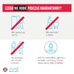 Ponadto w czasie kwarantanny należy przestrzegać zasad higieny, w szczególności myć ręce; unikać dotykania oczu i ust, zakrywać usta i nos podczas kaszlu zgięciem łokcia lub chusteczką.
