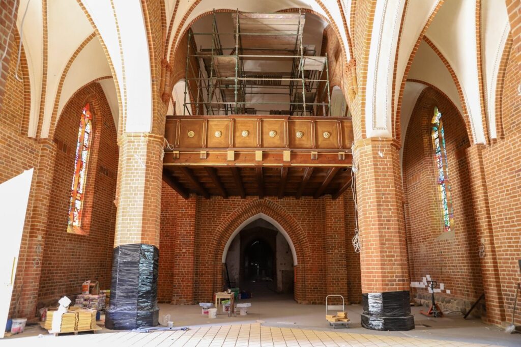 Jak czytamy: Wieża wraz z kopułą, iglicą i latarnią jest gotowa. Elewacja całego zabytku, cegła po cegle przeszła gruntowną renowację. Na tę chwilę pozostaje nam już tylko czekać na demontaż rusztowań. W środku aktualnie układana jest posadzka, po tym przyjdzie czas na renowację prezbiterium.