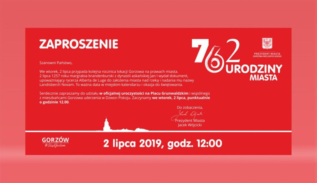 2 lipca w Gorzowie odbędą się uroczystości z okazji 762. urodzin miasta. Obchody rozpoczną się w samo południe na Placu Grunwaldzkim od wspólnego uderzenia w Dzwon Pokoju – czytamy w komunikacie z magistratu. O godzinie 13.00 rozpocznie się uroczysta sesja Rady Miasta Gorzowa.