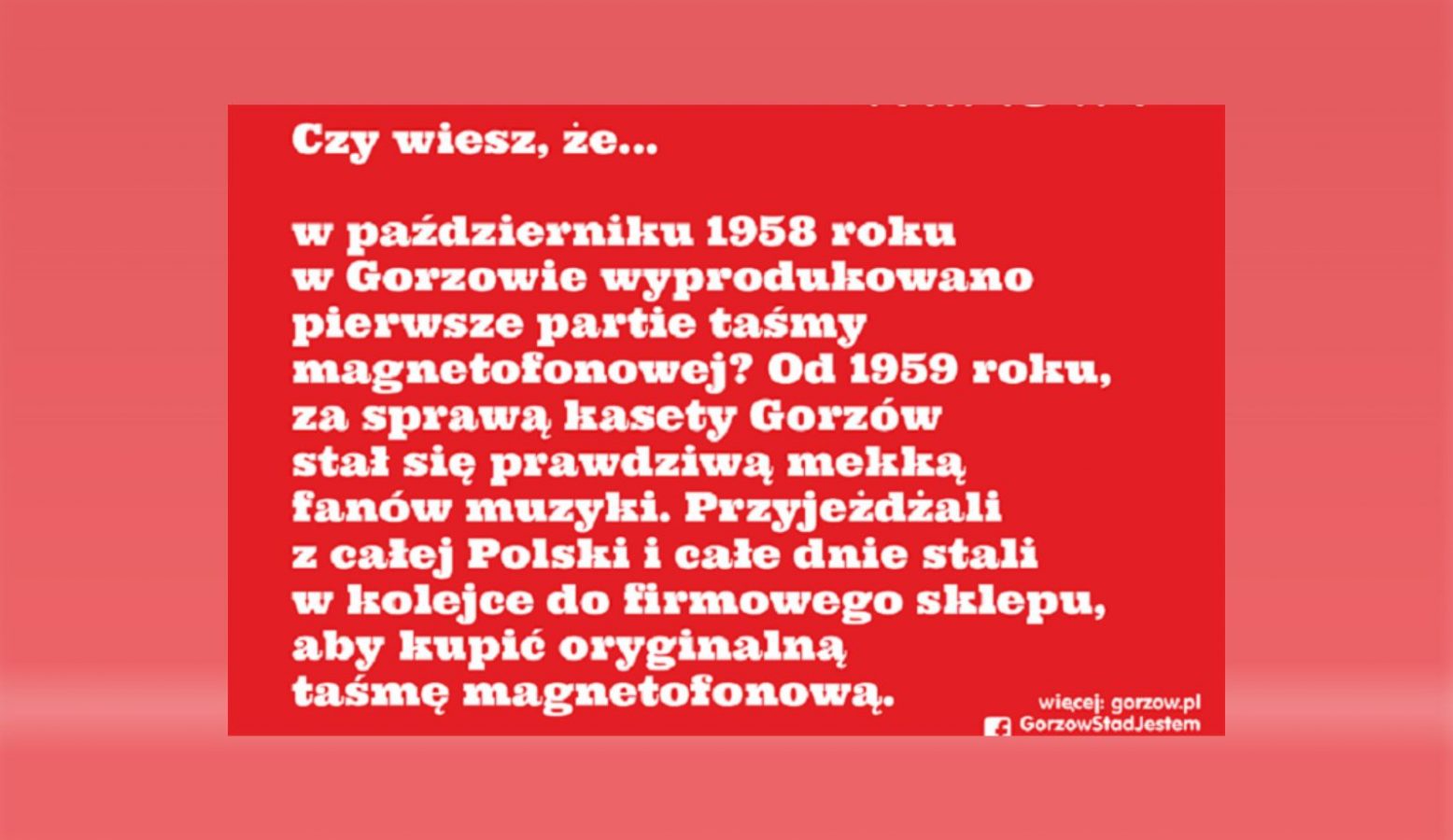 Z setki ciekawostek wyselekcjonowano 15. Efekty pracy mieszkańcy mogą oglądać na bilbordach, wiatach przystankowych czy na wybranych sklepowych witrynach. Ciekawostki o Gorzowie można też znaleźć na miejskiej stronie internetowej.