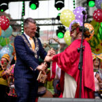 Dziś o godzinie 14:00 na scenie przy zielonogórskim ratuszu prezydent Janusz Kubicki przekazał klucze do miasta Bachusowi. Bóg wina, który jest jednym z symboli zielonogórskiego święta rozpoczął tym samym oficjalnie Winobranie 2019. Temu symbolicznemu momentowi przyglądały się setki zielonogórzan. Na scenę Bachusa wprowadził korowód prowadzony przez aktorów Lubuskiego Teatru z dyrektorem Robertem Czechowskim na czele: