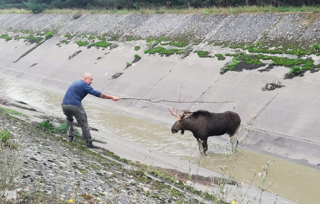 Ponad pięć godzin trwała akcja wyciągania poranionego łosia z kanału kanalizacyjnego łączącego Zielona Górę z oczyszczalnią ścieków. Zwierzę było wystraszone, zdezorientowane i nie mogło wyjść z kanału, który z obu stron okalają strome ściany. Na szczęście strażakom i całemu zespołowi osób udało się ujarzmić zwierzę.