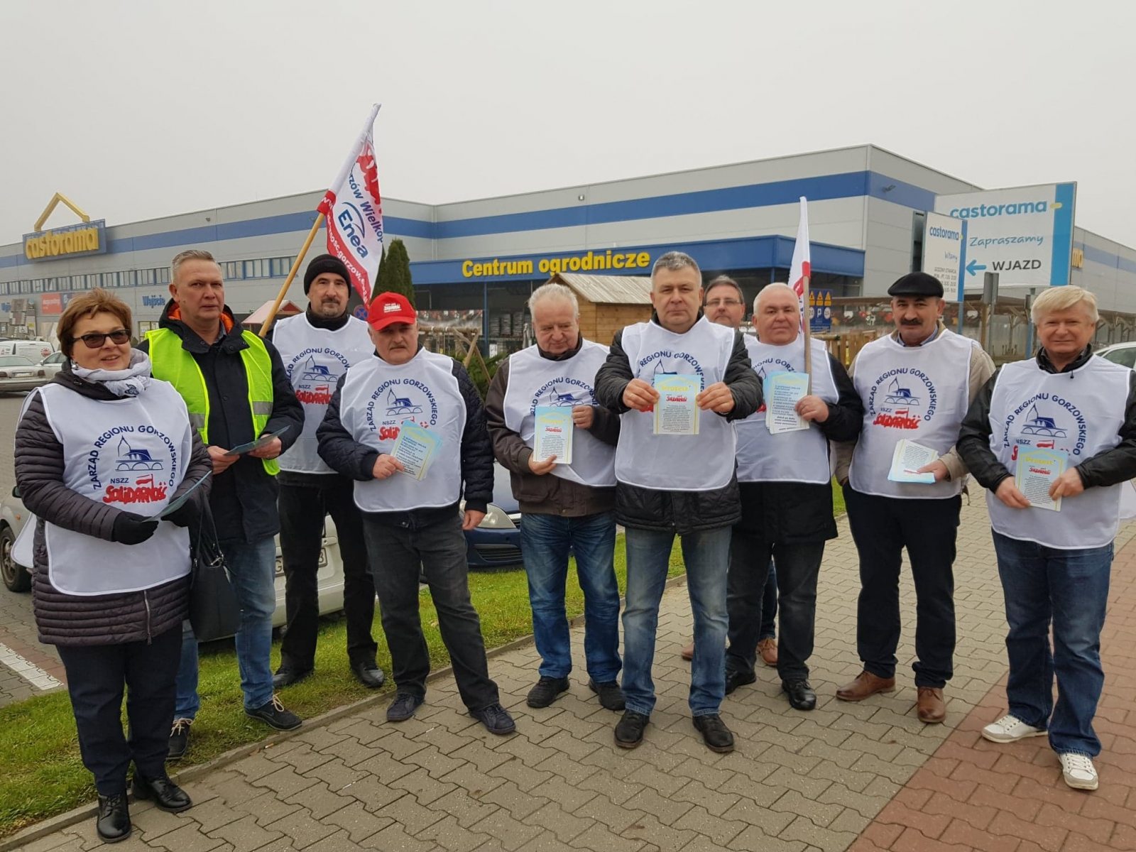 Przed gorzowską Castoramą protestowali w poniedziałek członkowie gorzowskiego zarządu NSZZ Solidarność. Powód to zwolnienia 9 pracowników, członków Komisji Międzyzakładowej NSZZ „Solidarność” z marketów m.in. w Warszawie, Kaliszu czy Lublinie