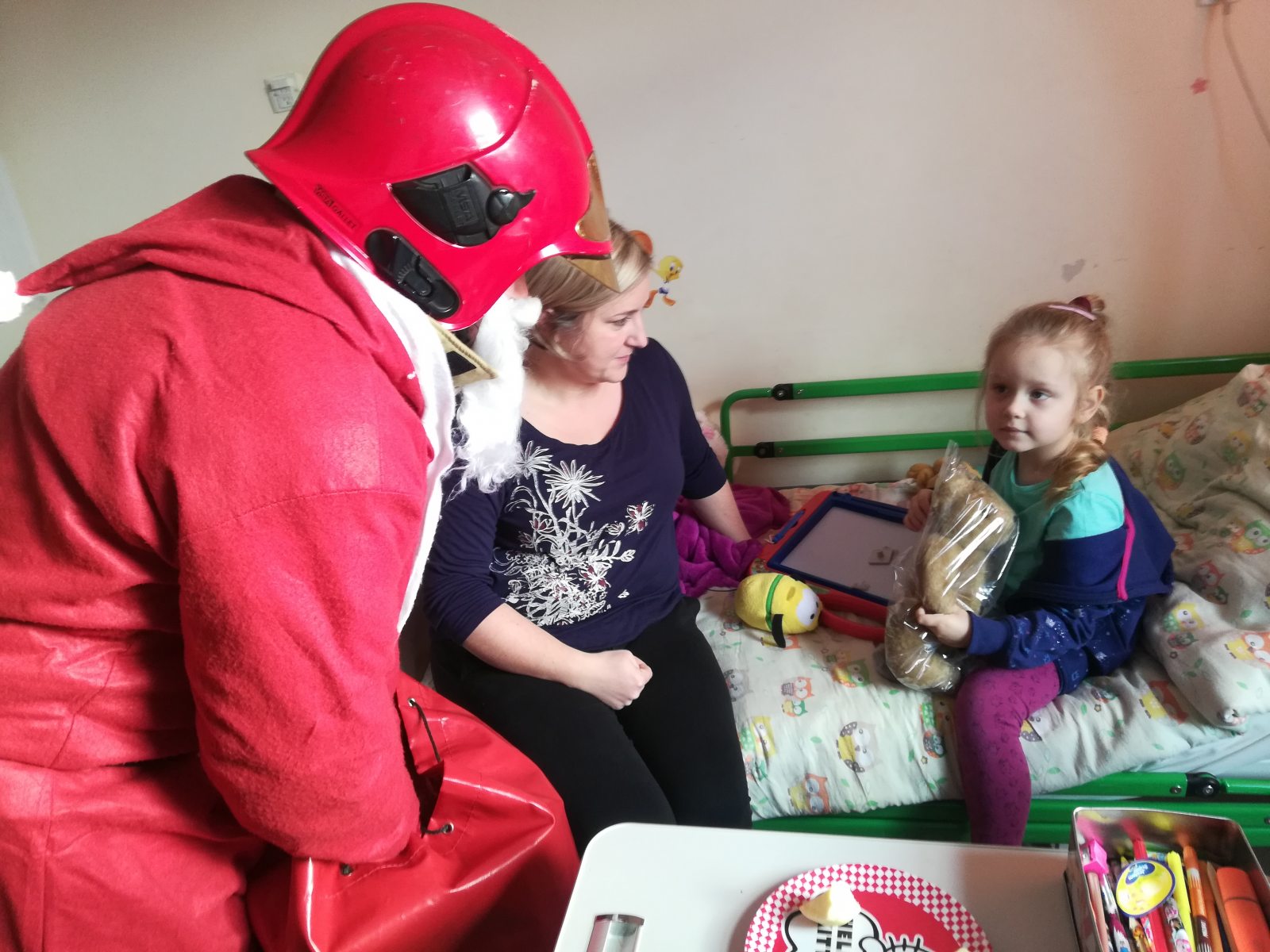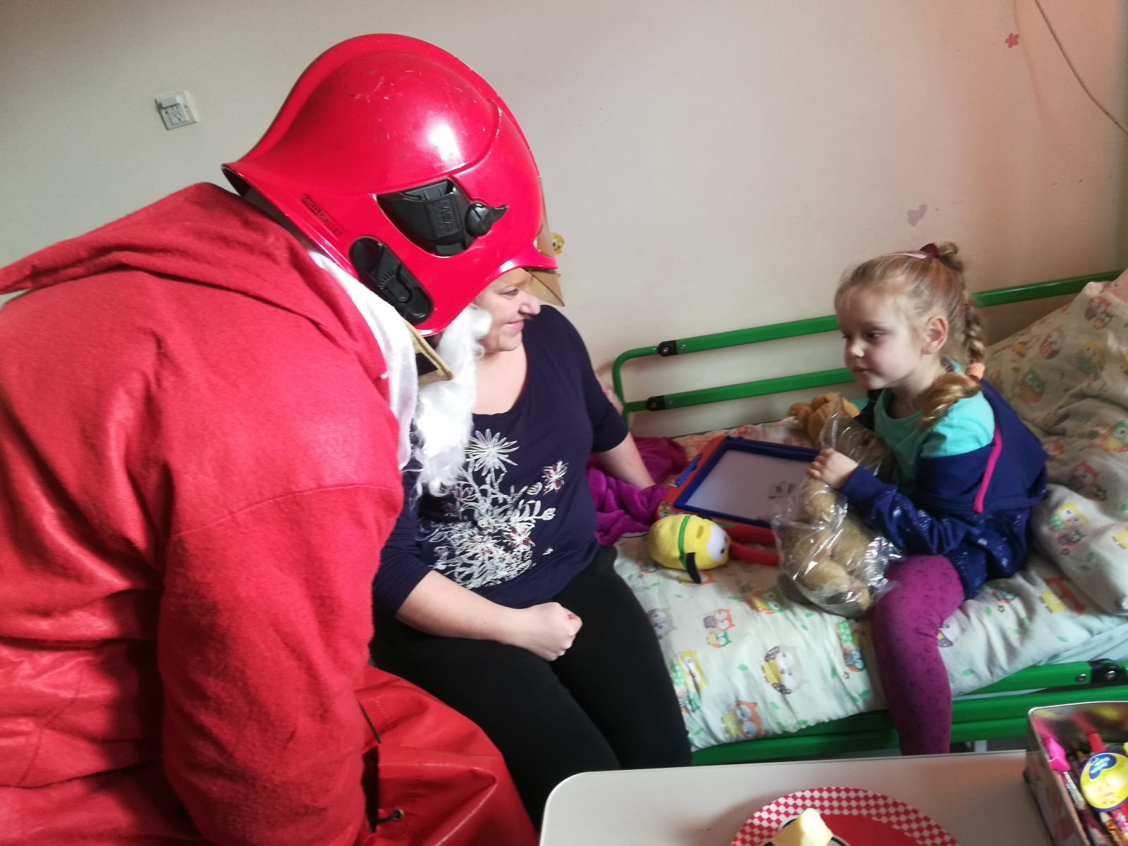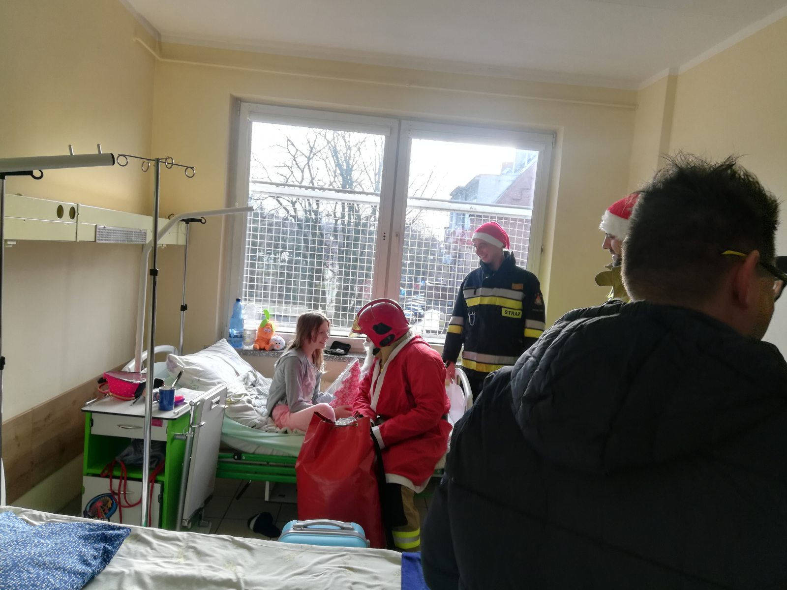 To inicjatywa oddolna zielonogórskich strażaków z 2 jednostki ratowniczo-gaśniczej Państwowej Straży Pożarnej. Strażacy przyjechali do szpitala dziś o 11:30 odwiedzić maluchów. Młodzi pacjenci szpitala otrzymali upominki, które mają im umilić świąteczny pobyt w placówce.