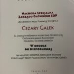 Stowarzyszenie Dziennikarzy Polskich nagrodziło naszego radiowego kolegę Cezarego Galka za organizację konkursu „W drodze do Niepodległej”. Nagrodę Specjalną Zarządu Głównego SDP wręczono podczas dorocznej gali Nagród SDP w Warszawie.