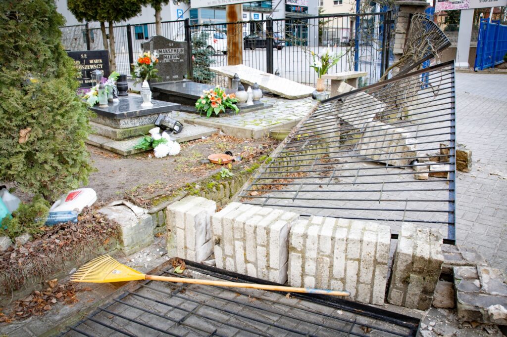 Jak już informowaliśmy, wczoraj zarządca zamknął dla odwiedzających cmentarz komunalny przy Żwirowej. Tego miejsca także nie oszczędziła wichura, wyrządzając sporo szkód.