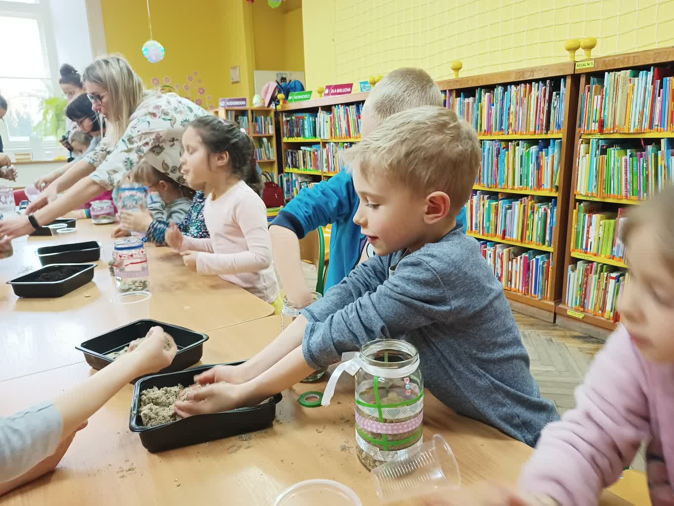 Uczestnicy spotkania wykonywali małe ogrody zamknięte w słoiku. Prowadząca zajęcia Jolanta Szysz podkreśla, że wyobraźnia dzieci i bodźce, które odbierają podczas zajęć rozwijają kreatywność, ale i wyostrzają zmysły: