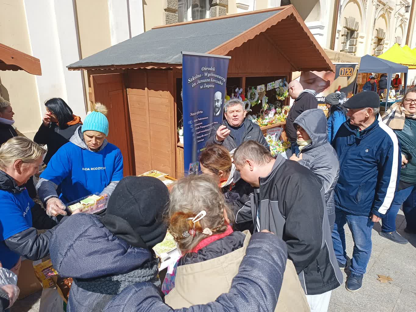 Podczas tegorocznego jarmarku wielkanocnego wychowankowie oraz nauczyciele ze Specjalnego Ośrodka Wychowawczego sprzedawali ciasta oraz stroiki świąteczne. Zysk ze sprzedaży zostanie przeznaczony na remont placu zabaw placówki.