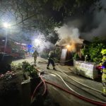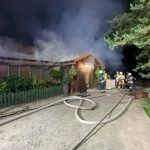 Nocny pożar w ośrodku Azyl w Mironicach. W gaszeniu ognia brało udział 8 jednostek straży pożarnej, w tym m.in. OSP z Kłodawy i Santocka.