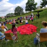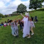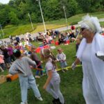 Dzieci, które wzięły udział w zabawach na trawie przed placówką świetnie się bawiły.