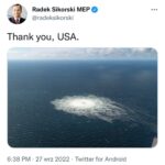 Wiceminister spraw zagranicznych Paweł Jabłoński zwrócił uwagę na to, że przedstawiciel Rosji przy ONZ podziękował Radosławowi Sikorskiemu za jego tweet dotyczący uszkodzeń gazociągów Nord Stream 1 i 2.