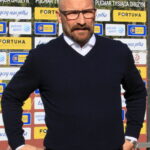 Zielona Góra, 12.10.2022. Trener Lechii Zielona Góra Andrzej Sawicki podczas meczu 1/16 fina³u pi³karskiego Pucharu Polski z Jagielloni¹ Bia³ystok, 12 bm. (js) PAP/Lech Muszyñski