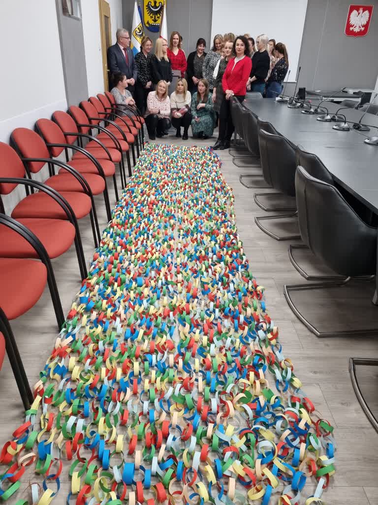 Nowosolscy pracownicy magistratu wykonali świąteczny łańcuch o długości kilkunastu metrów. W ten sposób dołączyli do inicjatywy Stowarzyszenia Pro Salute, które czynnie wspiera terapię i rehabilitację dzieci niepełnosprawnych, w tym z dystrofią mięśniową. – Chcieliśmy wspomóc dzieci w walce z chorobą – powiedziała Ewa Batko, rzecznik prezydenta Nowej Soli.