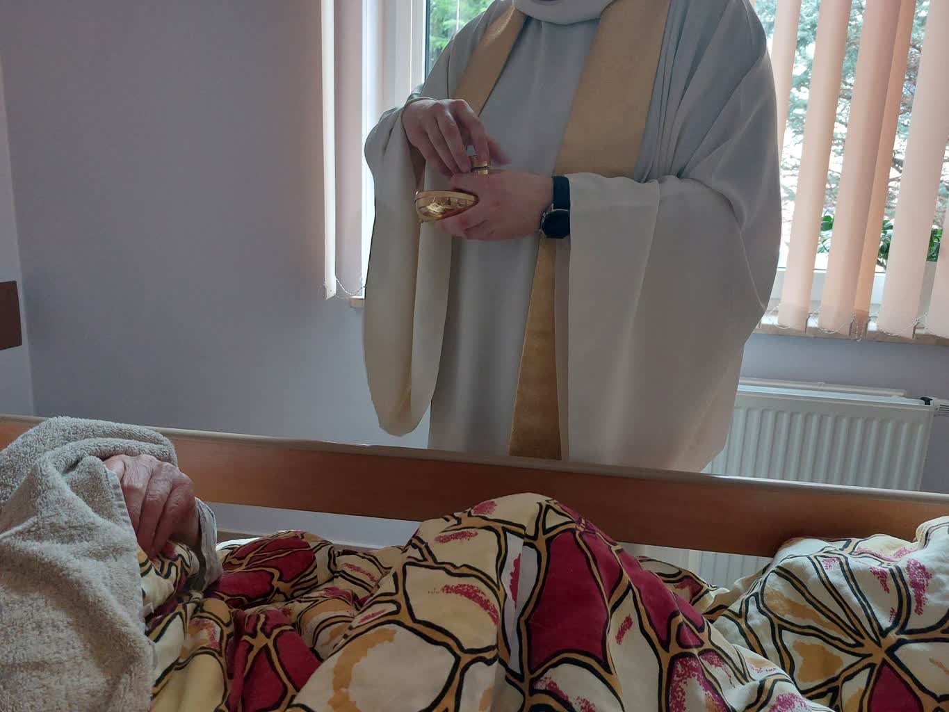 Poza wykwalifikowanym personelem medycznym, ważną rolę w opiece nad chorymi odgrywa kapelan. Ksiądz Mariusz Łuszczek, mówi, że często razem z rodzinami towarzyszy chorym w momencie odejścia: