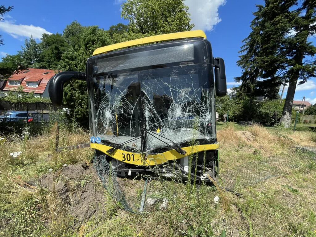 – Kierująca autobusem podczas wyjeżdżania z zatoczki nie ustąpiła pierwszeństwa przejazdu kierującemu osobowym Volkswagenem, zjechała na przeciwległy pas, po czym wjechała do ogródka – potwierdziła podins. Małgorzata Stanisławska, rzecznik KMP w Zielonej Górze.