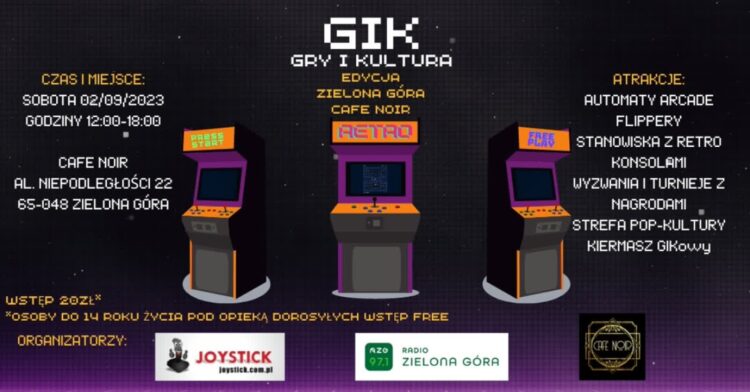 Impreza GiK w najbliższą sobotę, od 12:00 do 18:00, w zielonogórskim klubie Cafe Noir, przy al. Niepodległości 22. Dzieci do lat 14, pod opieką dorosłego, wstęp bezpłatny. Szczegóły wydarzenia na stronie GiK Zielona Góra.