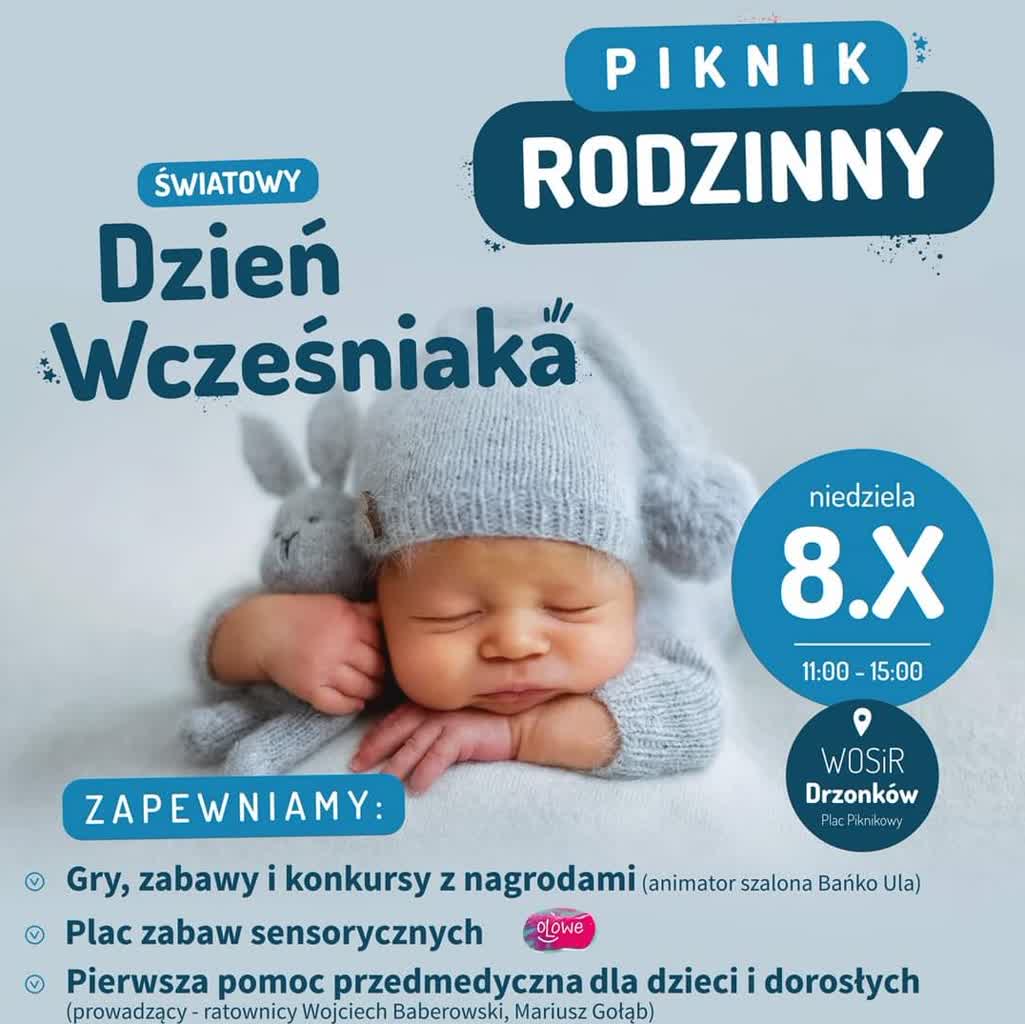 Gry i zabawy, porady specjalistów i ognisko – tak będą wyglądały zielonogórskie obchody Dnia Wcześniaka. W niedzielę, 8 października, Stowarzyszenie Serce dla Wcześniaka zaprasza na rodzinny piknik do Drzonkowa. Zabawa na terenie Wojewódzkiego Ośrodka Sportu i Rekreacji rozpocznie się o 11.00 i potrwa do 15.00.