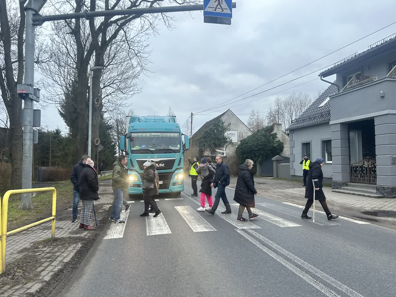 Mieszkańcy protestowali na przejściu dla pieszych przy centralnym skrzyżowaniu w Droszkowie. – Nie chcemy nikomu utrudniać powrotu do domu, ale to jedyny sposób na to, żeby nagłośnić problem – podkreśla Jarosław Śliwiński z Droszkowa: